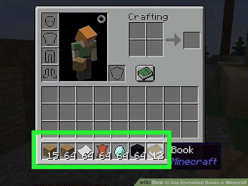 If you have an anvil, it will help you to use the enchanting book as a material. However, to create the anvil, you require the below items: